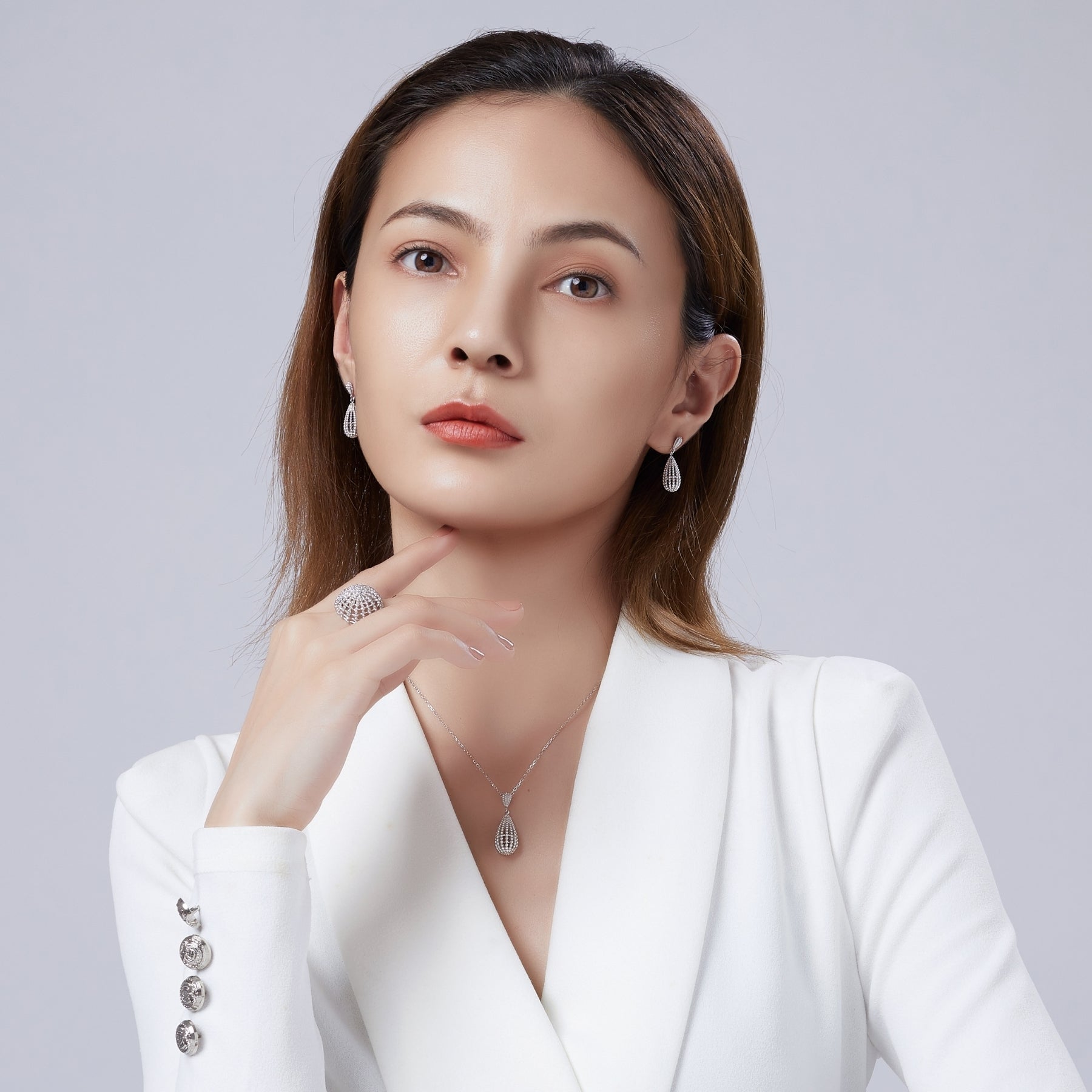 Silver: Bella tear drop pendant in rhodium plate on sterling silver.