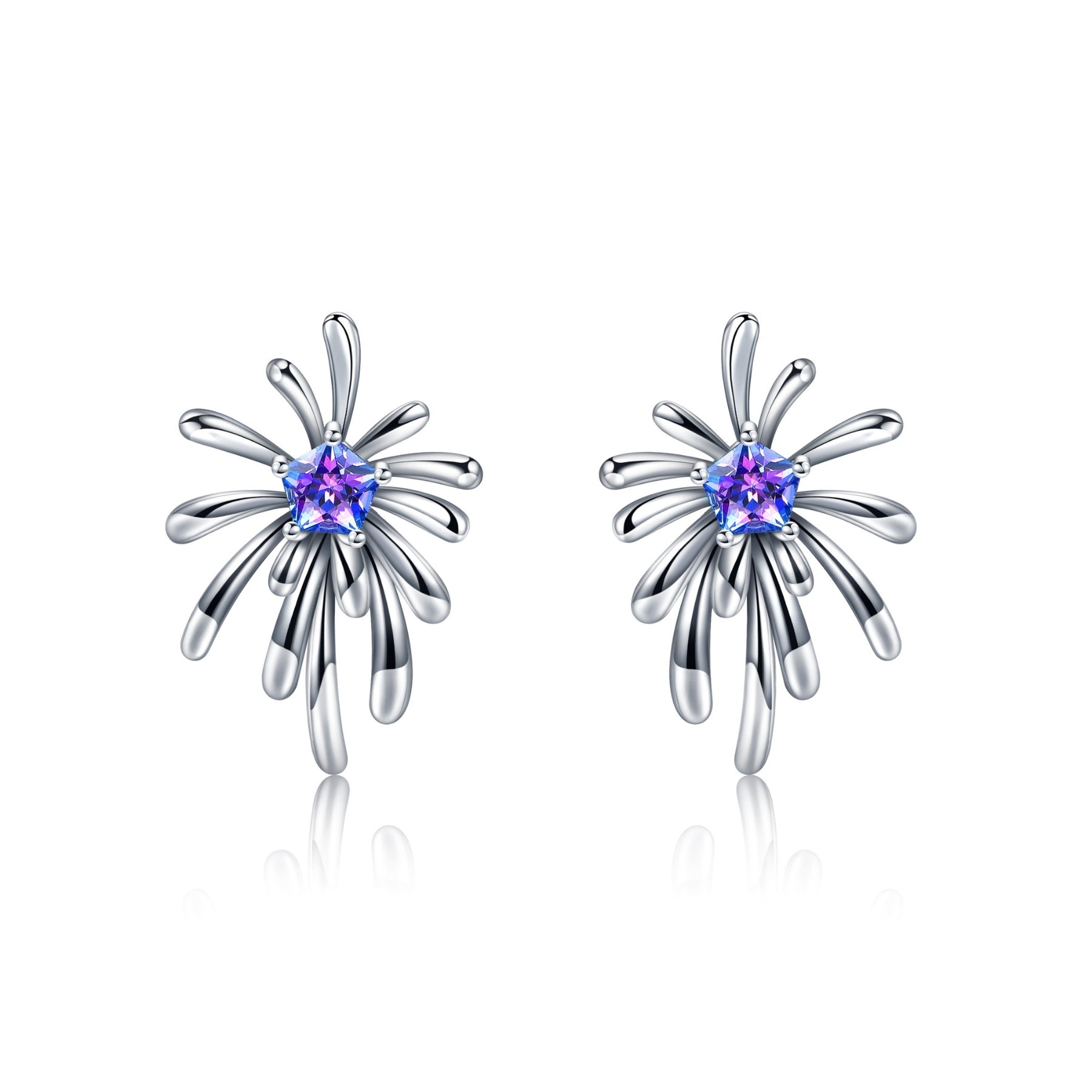 Carpe Diem ‘Crossette’ stud earrings with Swarovski Zirconia Pentagon Star Purple-Aqua set in white rhodium plate on sterling silver.