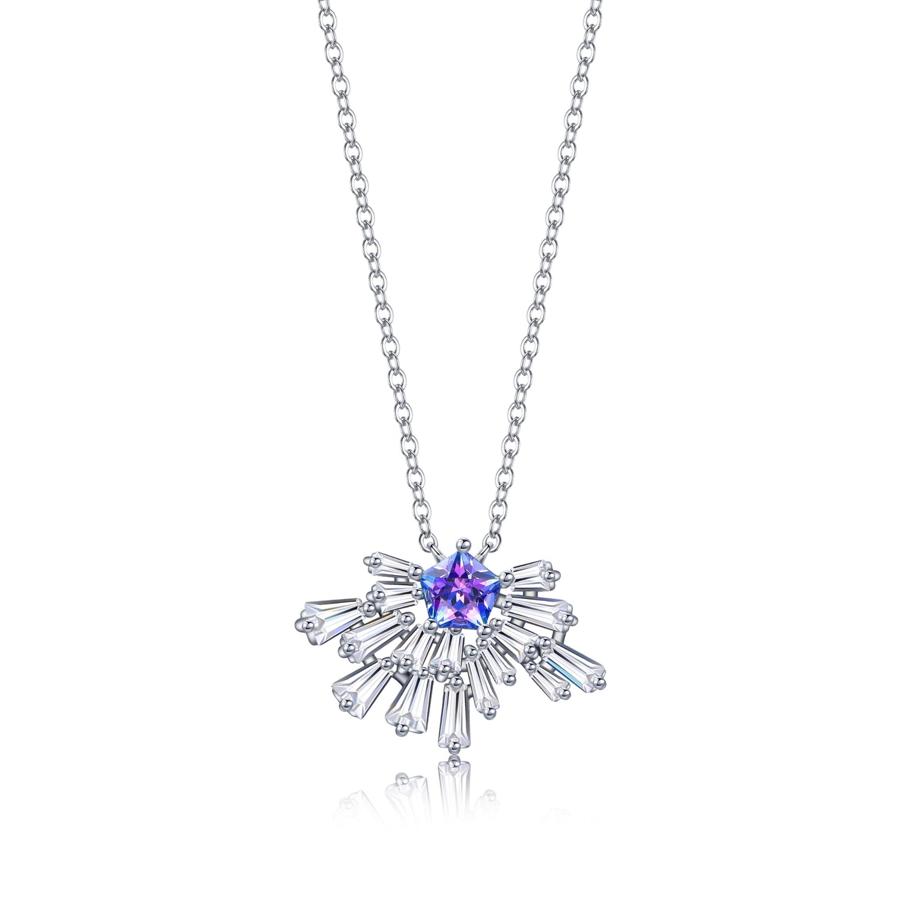 Carpe Diem ‘Fountain’ pendant with Swarovski Zirconia Pentagon Star Purple-Aqua and tapered baguette CZ, set in white rhodium plate on sterling silver.