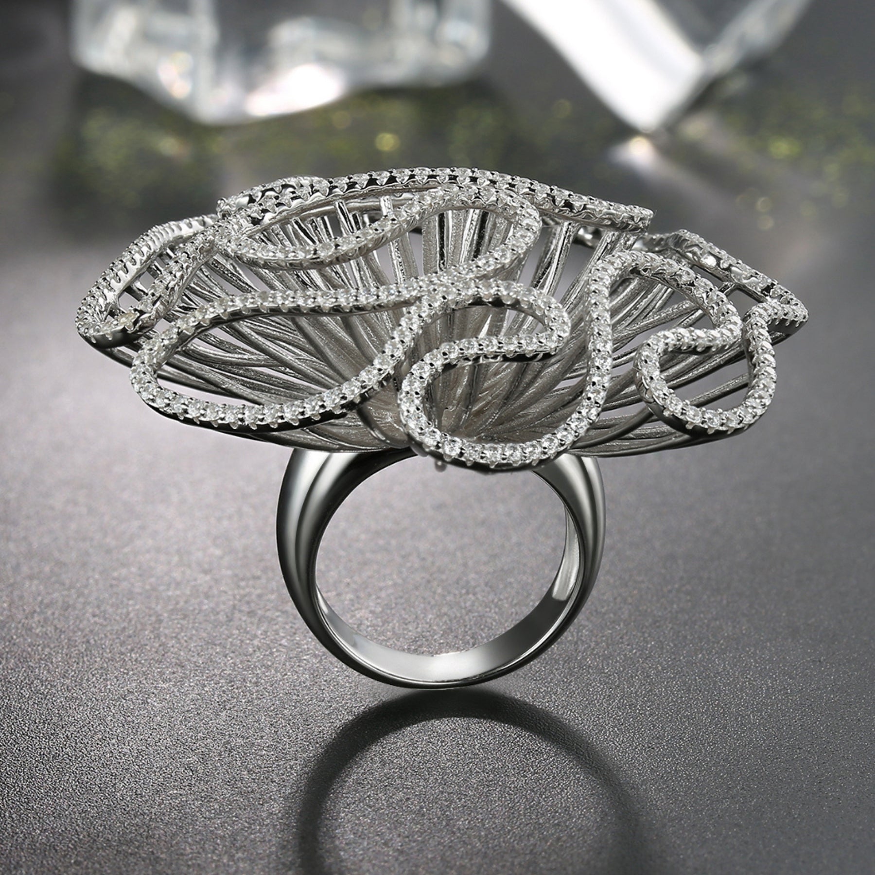 Cascade large ring with cubic zirconia available in three finishes - white rhodium, 18ct rose gold, or black rhodium plated on sterling silver.