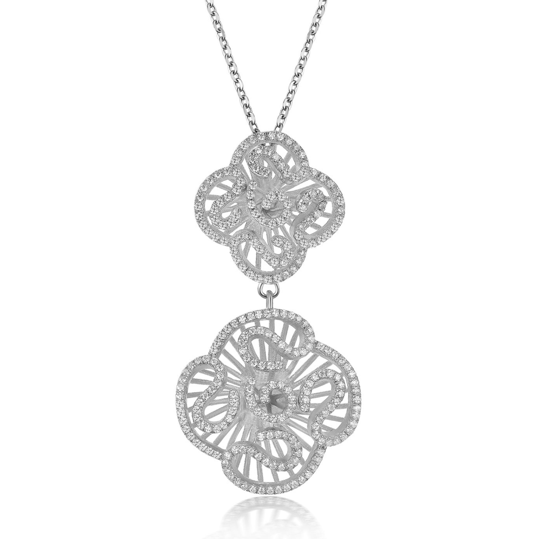 Cascade double unit drop pendant with cubic zirconia, set in white rhodium plated on sterling silver.