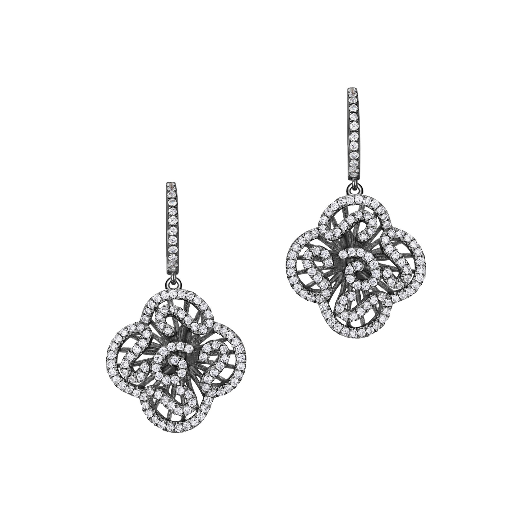 Cascade mini drop earrings with cubic zirconia available in two finishes - white or black rhodium plated on sterling silver.