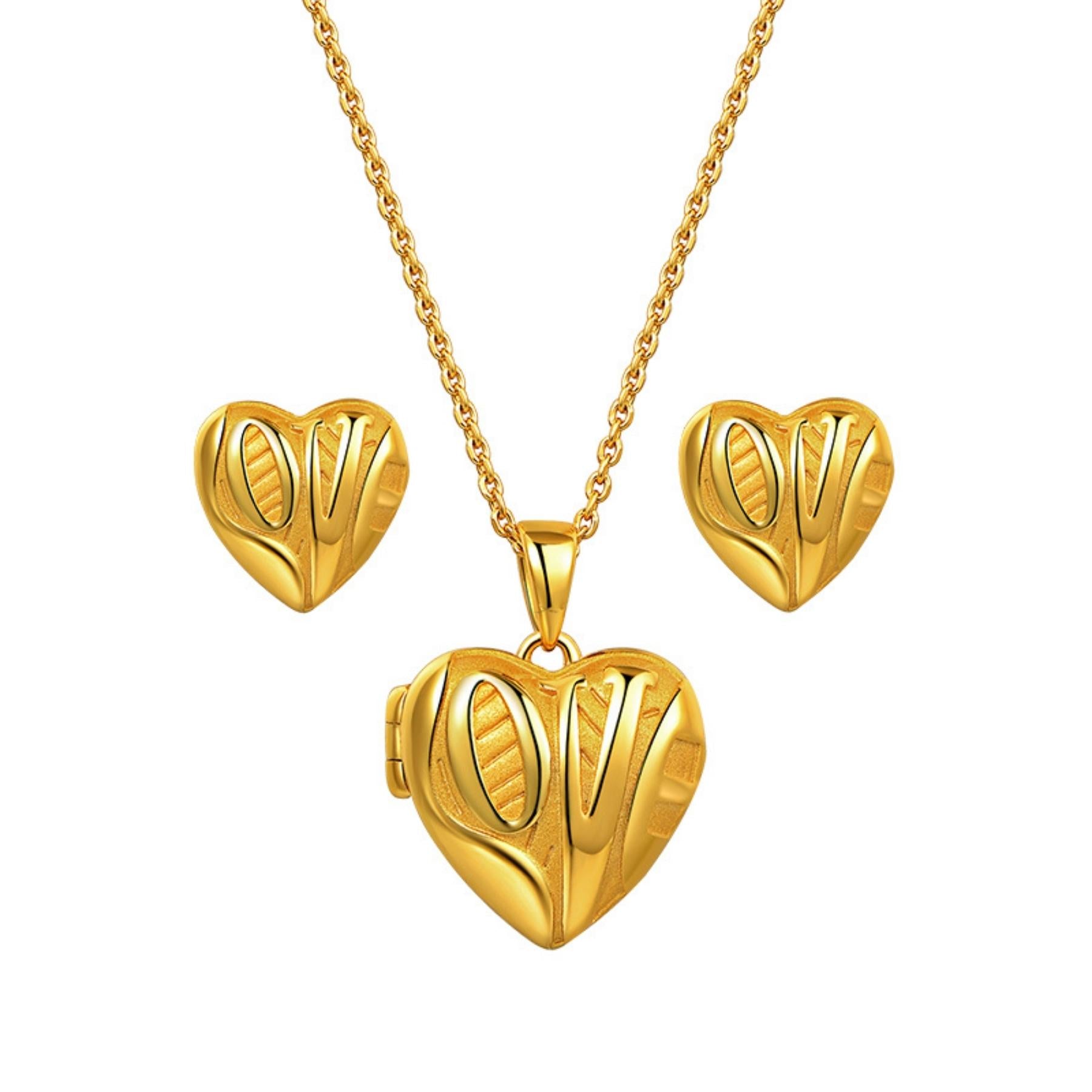 The limited-edition Love Heart gift set is the epitome of love is love, and it knows no bounds. The heart motifs of the Love Heart make for a much-loved gift for Valentine’s Day. This locket and earring jewelry set are expertly inscribed with the word ‘love’. Inside the locket is a secret heart-cut synthetic ruby. Carefully set in 18ct yellow gold plate on sterling silver.