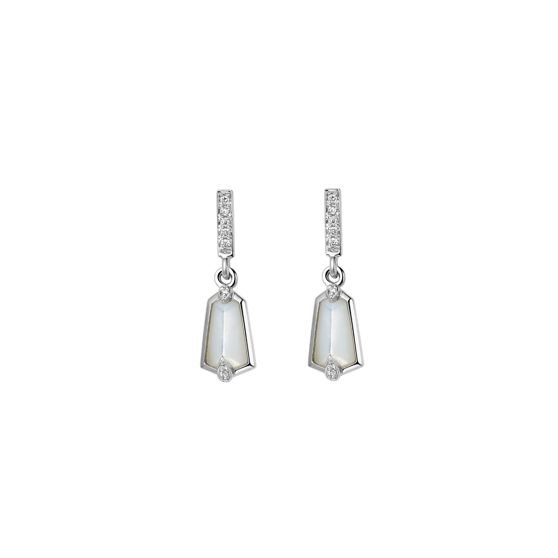 Nova small kite stud drop earrings 0.056ct white diamonds and 0.72ct mother of pearl, set in 18ct white gold with a high polish