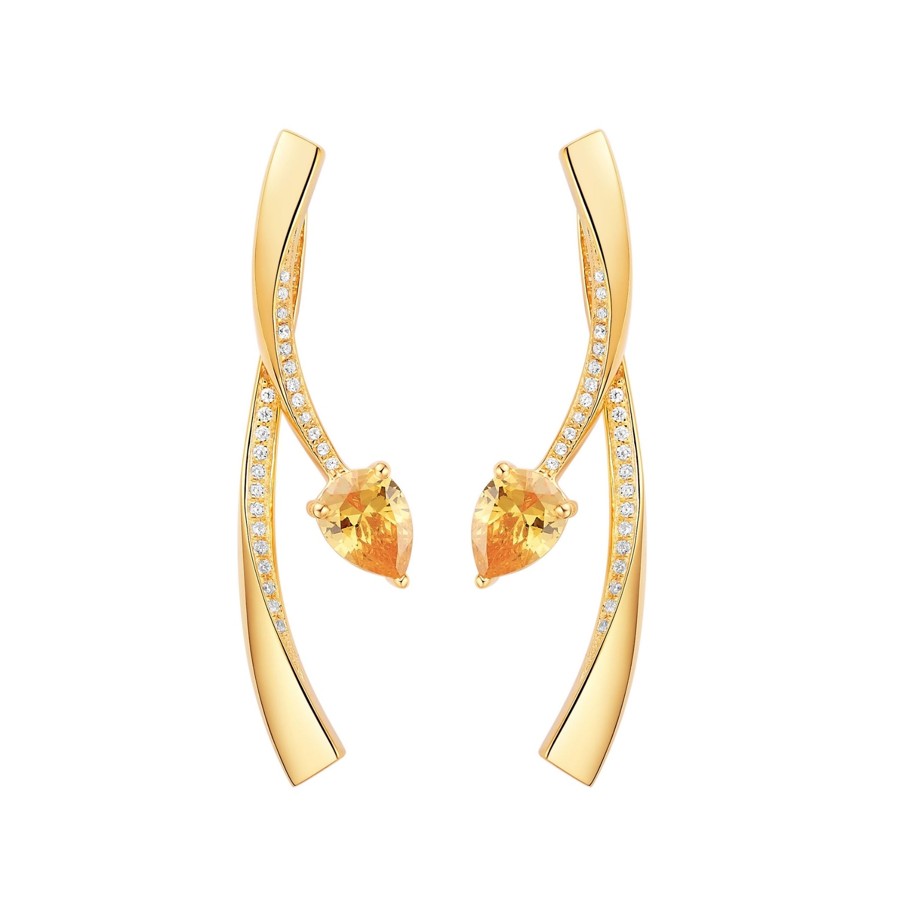 Shooting Star two-piece earrings comes available in two finishes - brushed white rhodium plated with blue topaz or purple amethyst. Also available in polished 18ct yellow gold plated with citrine.