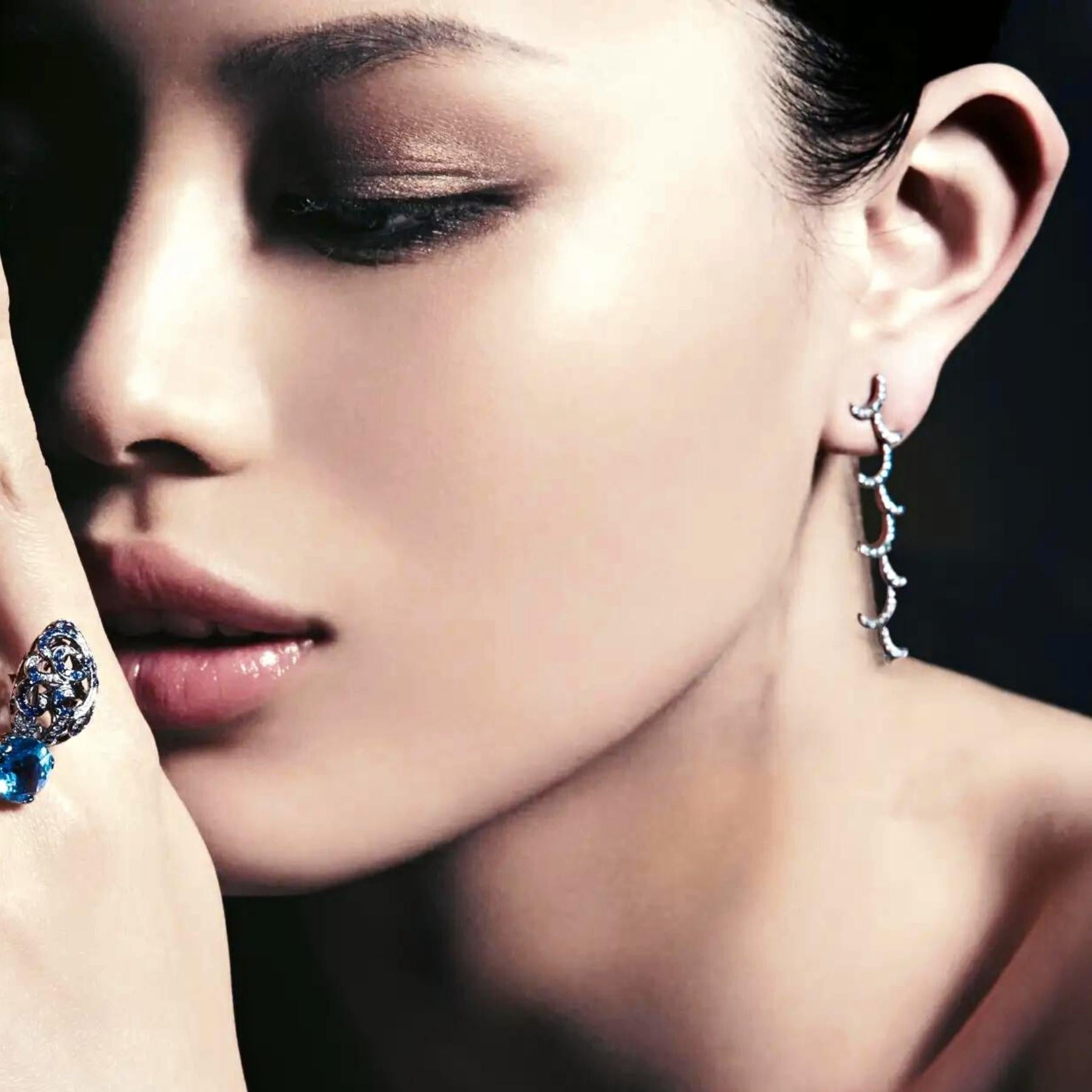Whispering curl detail earrings with 0.25ct white diamonds set in black rhodium plate on 18ct white gold.